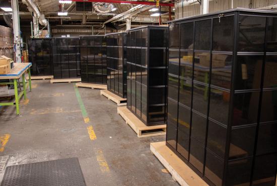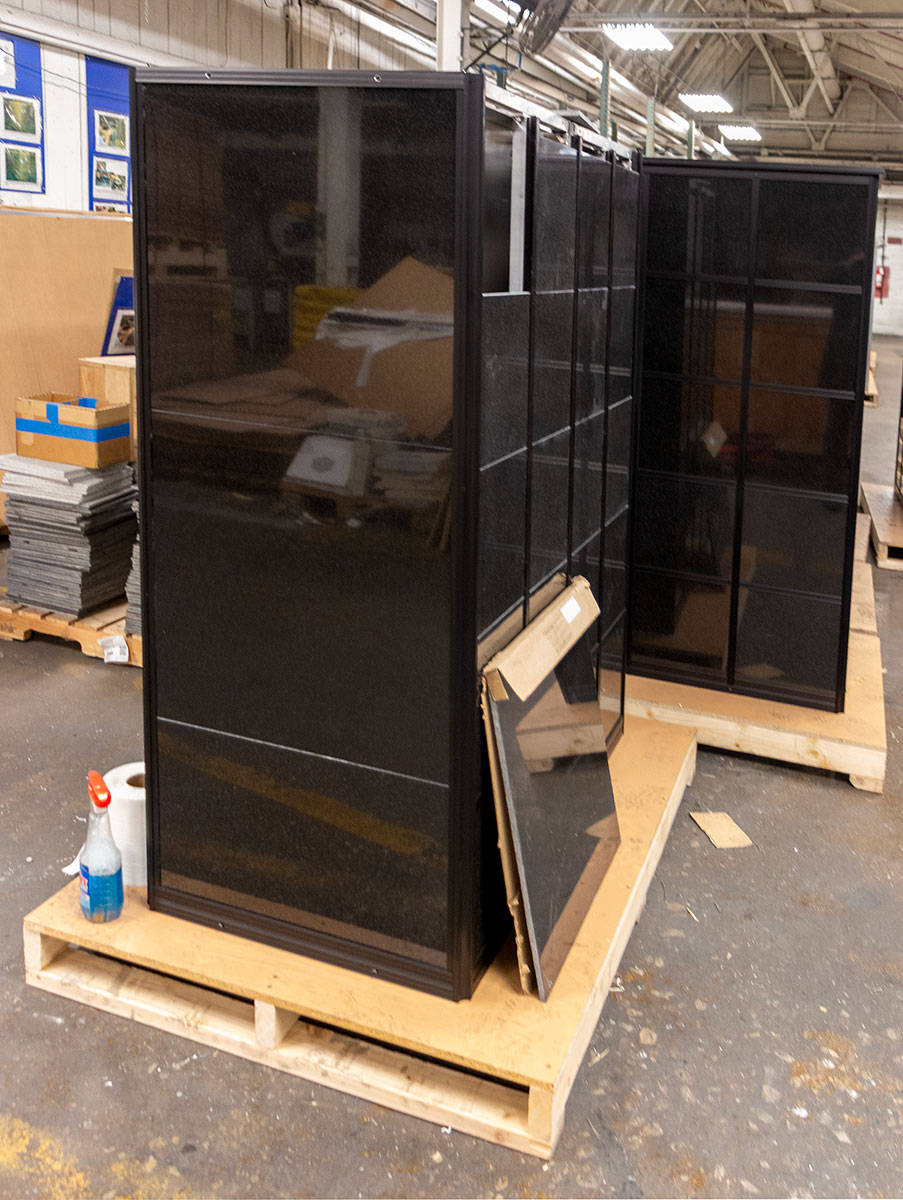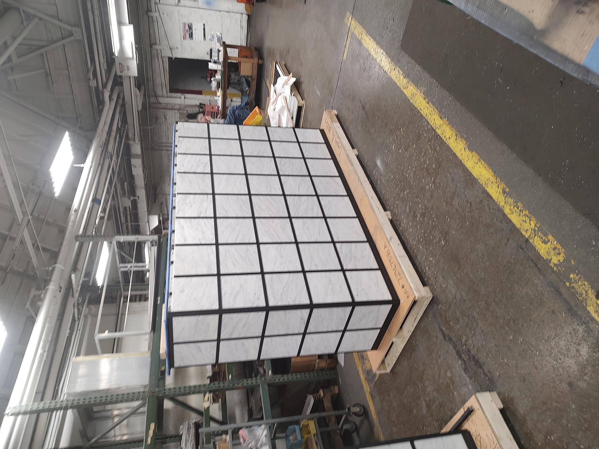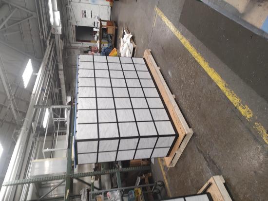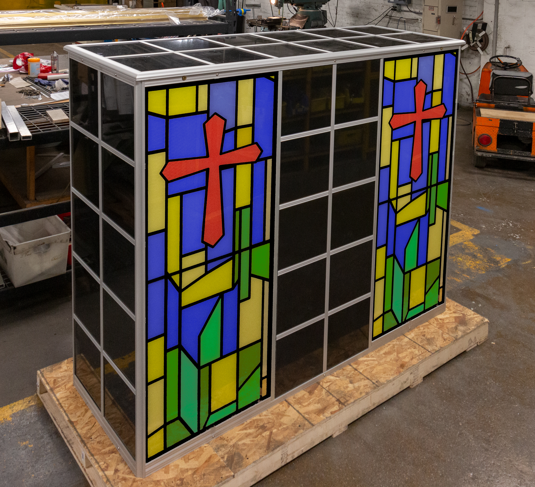 All parts are partitioned and fit together like a puzzle. Niche compartment units are installed into frame weldments. Frame weldments are nested and anchored together forming the internal structure of the columbarium. Extrusions are installed on the exterior and provide a solid structure for laying the granite tiles. Lastly, a roof is attached to the body assembly.